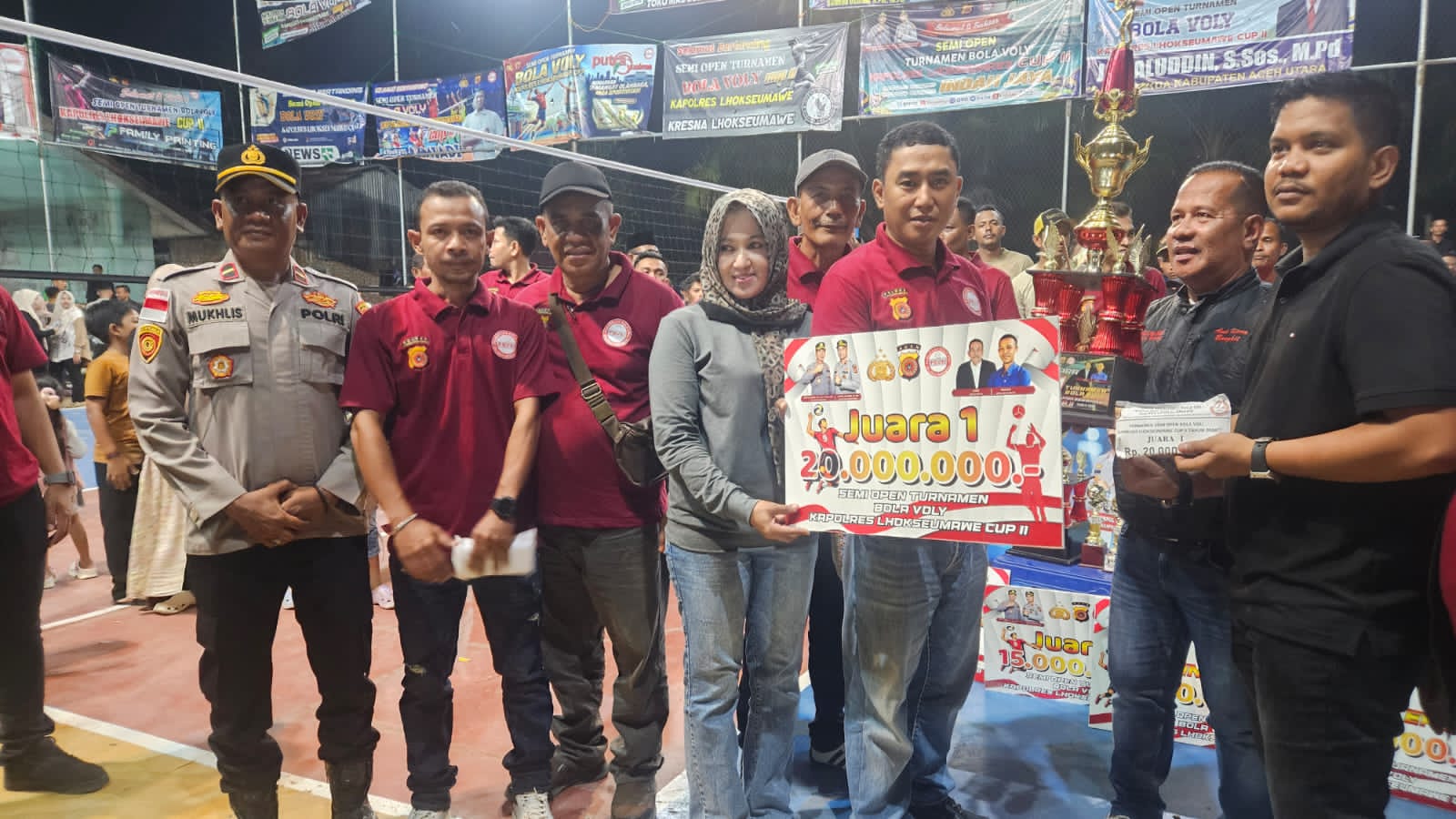 Lhokseumawe – Turnamen Bola Voli Semi Open Piala Kapolres Lhokseumawe Cup II Tahun 2026 resmi ditutup dalam suasana meriah dan penuh sportivitas di lapangan voli Desa Tanjong, Kecamatan Meurah Mulia, Kabupaten Aceh Utara, Minggu (19/4/2026) malam.