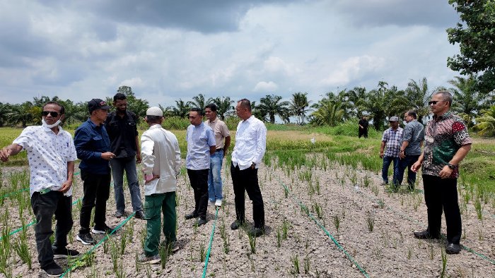 Aceh Utara – Pelaksana Tugas (Plt) Kepala Dinas Pertanian dan Perkebunan (Kadistanbun) Aceh, Ir. Azanuddin Kurnia,SP, MP, meninjau langsung perkembangan tanaman padi gogo di lahan terdampak bencana hidrometeorologi di Matang Siujuek,Kecamatan Baktiya Barat, Kabupaten Aceh Utara, Jumat (27/3/2026).