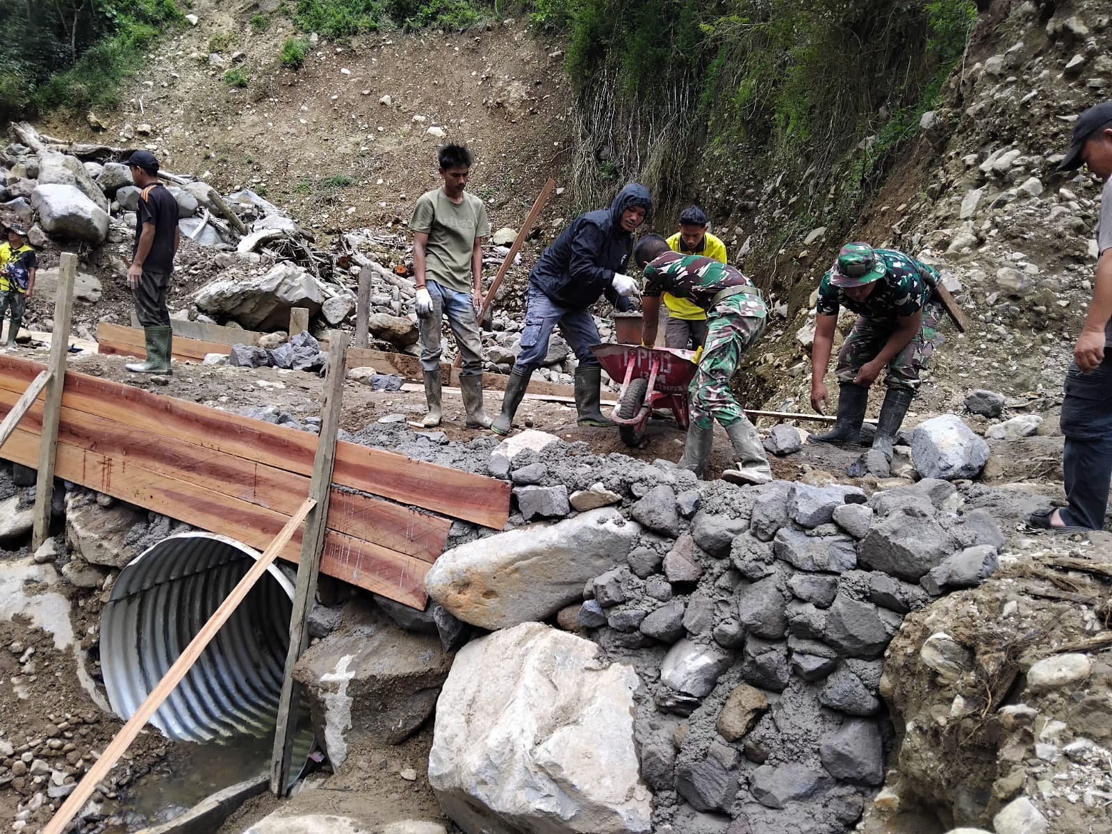 Ia menjelaskan bahwa saat ini progres pembangunan telah memasuki tahap penting, yaitu pemasangan gorong-gorong Aramco yang menjadi struktur dasar penopang jembatan. Tahapan tersebut berhasil diselesaikan dengan baik berkat kerja sama yang solid antara TNI dan masyarakat, sehingga proses pengerjaan dapat dilanjutkan ke tahap berikutnya.