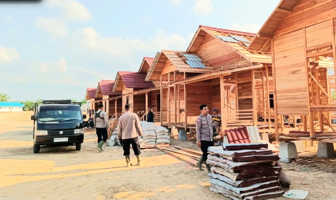 Aceh Tamiang – Personel Kompi 2 Batalyon B Pelopor Satbrimob Polda Aceh melaksanakan pengamanan dan pengawasan pembangunan Hunian Tetap (Huntap) Polri di Desa Simpang Kanan, Kecamatan Kejuruan Muda, Kabupaten Aceh Tamiang, Kamis (2/4/26). Kegiatan ini merupakan bentuk nyata kehadiran Polri dalam mendukung percepatan pembangunan fasilitas tempat tinggal yang diperuntukkan bagi masyarakat terdampak bencana banjir dan longsor.