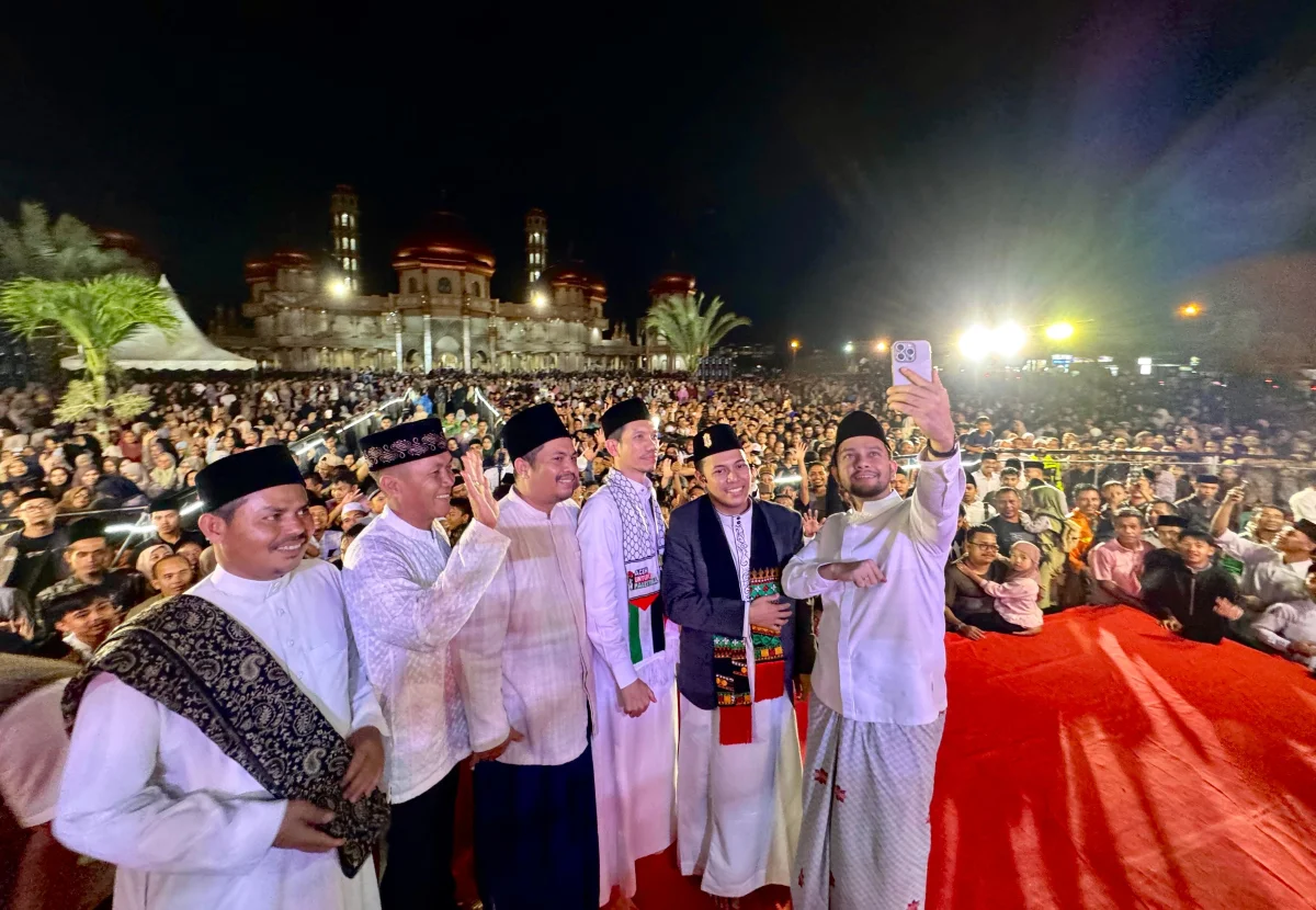 Meulaboh – Lautan manusia memadati Kompleks Masjid Agung Baitul Makmur Meulaboh, Kamis (2/4/2026), dalam acara Tabligh Akbar dan Halal Bihalal Pemerintah Kabupaten Aceh Barat. Kegiatan ini menghadirkan penceramah muda nasional, Tgk. Habibi An Nawawi, Juara 1 Akademi Sahur Indonesia (AKSI) Indosiar 2026. Ribuan masyarakat dari Aceh Barat bahkan kabupaten tetangga berbondong-bondong datang sejak sore untuk menyaksikan ceramah dan tausyiah yang sangat dinantikan.