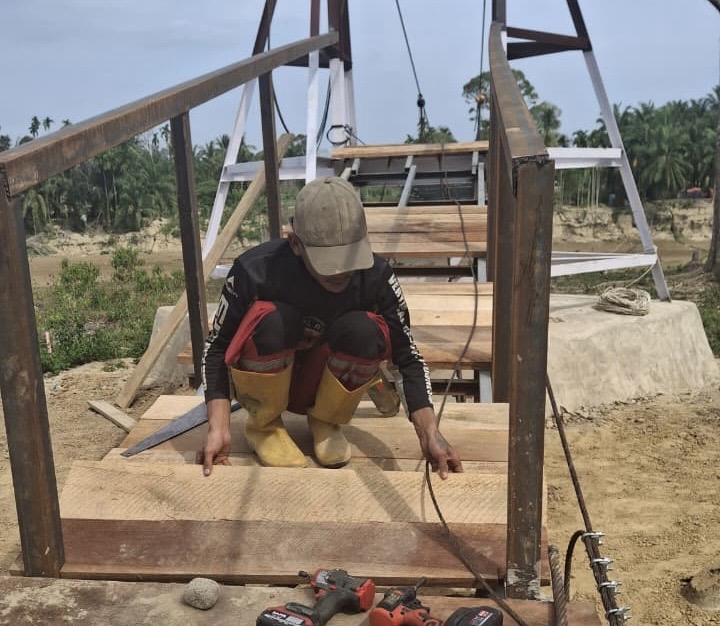 Aceh Tamiang – Upaya percepatan pembangunan infrastruktur terus dilakukan oleh jajaran TNI dari Kodam Iskandar Muda guna meningkatkan konektivitas wilayah serta kesejahteraan masyarakat. Salah satunya melalui pembangunan Jembatan Gantung Perintis Garuda yang melintasi Sungai Tamiang, menghubungkan Desa Sekerak Kiri dengan Desa Bandar Mahligai, Kecamatan Sekerak, Kabupaten Aceh Tamiang.